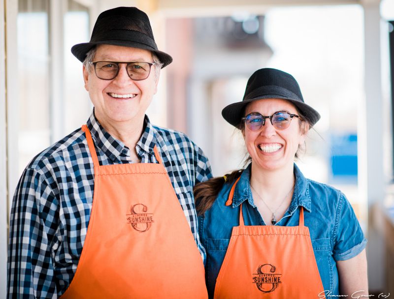 Ils se sont rencontrés dans le cadre de leur travail à la Ressourcerie des Frontières. Durant une année sabbatique, le couple vivant à Fitch Bay va boire un café dans un commerce à vendre. L'affiche venait d'être mise et Karine, qui aimait aller dans les cafés durant ses années d'étude trouvait dommage que le commerce au cœur de Stanstead disparaisse. Le couple voit donc une belle opportunité d'ouvrir un commerce au cœur de Stanstead qui unirait la communauté de la petite ville. Ayant déjà un pied dans le domaine de l'hébergement, puisqu'ils louaient déjà leur maison à Fitch Bay, Karine et Jean se sont lancés dans un nouveau projet et c'est en 2018 que l'Auberge Le Sunshine est née.